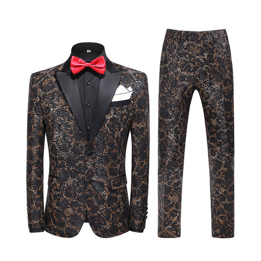 2-teiliges Herrenanzug-Set mit Jacquard-Muster und 1 Knopf, bedruckt, Smokingjacke, Hose, Frühling/Herbst | 970