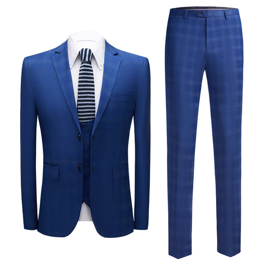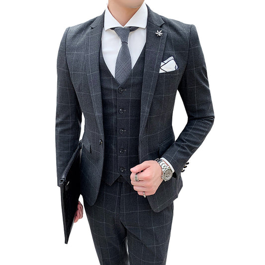 3-teiliger Slim Fit-Anzug für Herren mit Karomuster, formeller Business-Smoking, Blazer + Weste + Hose | 812