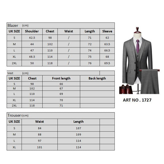 Herrenanzug Slim Fit mit Karomuster, 3-teilig, Einknopf, Business-Anzug für Hochzeiten und Bälle, Blazer, Smoking, Weste und Hose | 1727