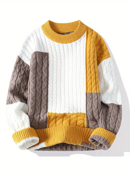 Warmer Herren-Strickpullover mit Rundhalsausschnitt, gerippt, langärmelig, Freizeitkleidung, Sweatshirt | 8373