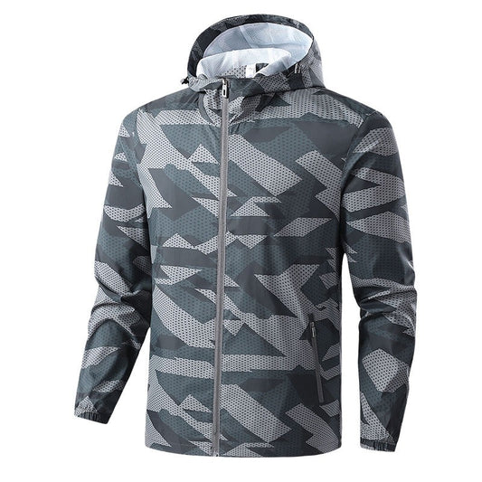 Herrenjacken, vollständig mit Camouflage-Muster bedruckt, leichte Jacken, Trenchcoat-Windbreaker mit durchgehendem Reißverschluss und Kapuze |
