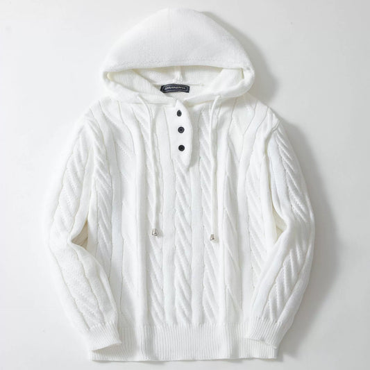 Herren-Strickwaren, gedrehter Kordelzug, Kapuzenpullover, 7-Nadel-Woll-Sweatshirtjacke | SY0139