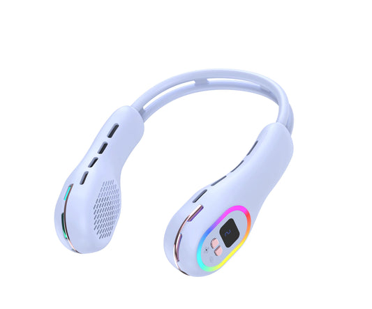 Sommer-Nackenventilator, tragbar, freihändig, flügellose Kühlventilatoren, LED-Farblicht, 3 Geschwindigkeiten, 360°-Windrichtungseinstellung, wiederaufladbare tragbare Klimaanlage | S57
