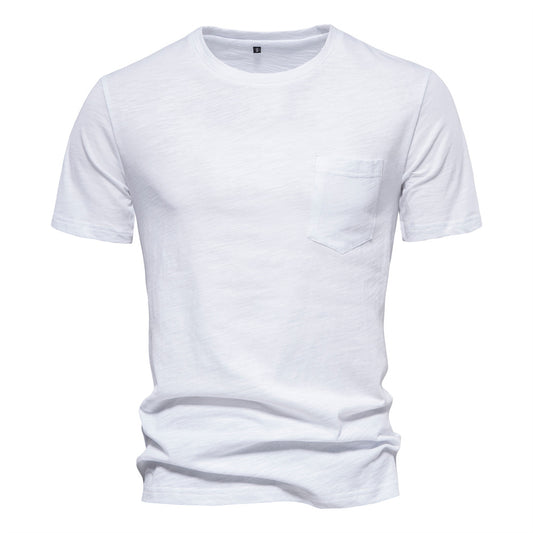 Herren Basic T-Shirt mit Brusttasche, Rundhalsausschnitt und kurzen Ärmeln | F039