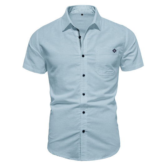 Einfarbiges Slim Fit Besticktes Kurzarm-Freizeithemd für Herren | SH690