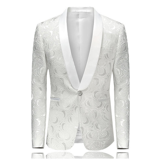 2-teiliges Herrenanzug-Set mit Jacquard-Muster und 1 Knopf, bedruckt, Smokingjacke, Hose, Frühling/Herbst | 970