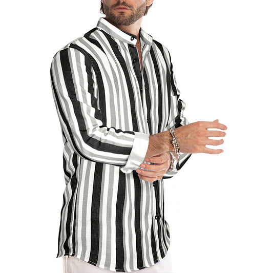 Lässige Langarm-Button-Down-Hemden für Herren mit Streifen | MC255371