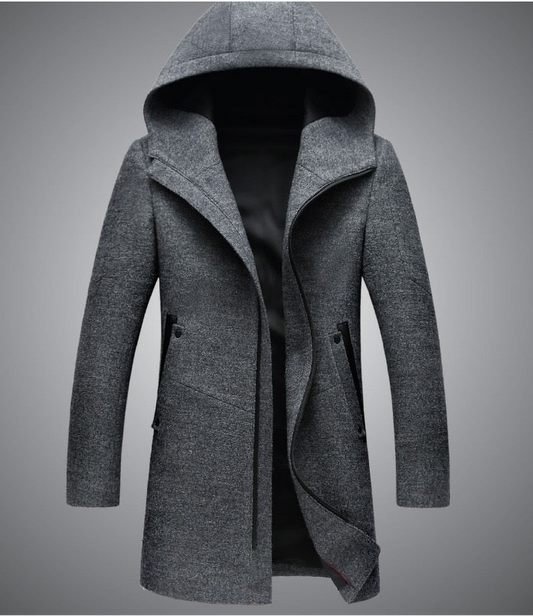 Herren Premium End Wollmischung Trenchcoat Reißverschluss Kapuze Mittellanger Mantel