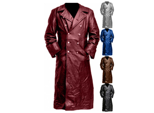 Herren Winter Langmantel Leder Zweireihige Deutsche Militärjacke | 1217-FY8