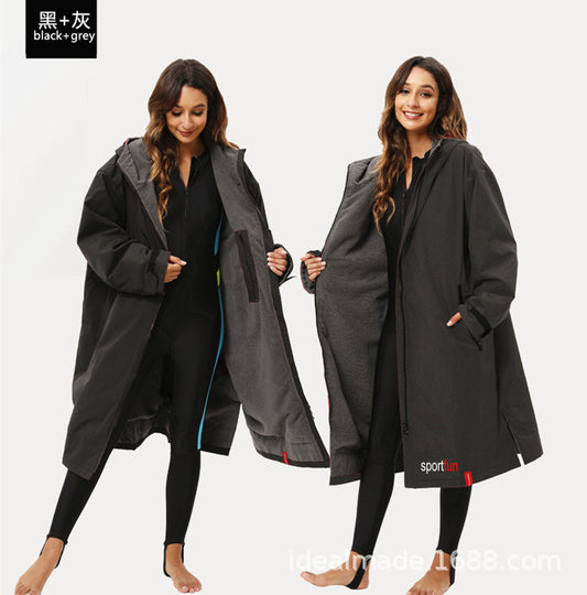Warmer, wasserdichter Schwimmparka, übergroßer Bademantel mit Kapuze, Sherpa-Innenfutter, Bademantel, Trockenmantel, Surfponcho | BCP266