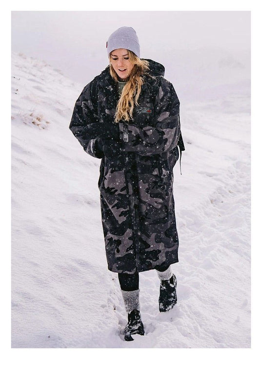 Unisex-Allwetter-Trockenmantel mit Kapuze und Camouflage-Muster – Wasserdichter, winddichter Schwimmparka mit Handtuchfutter | BCM022