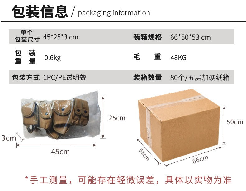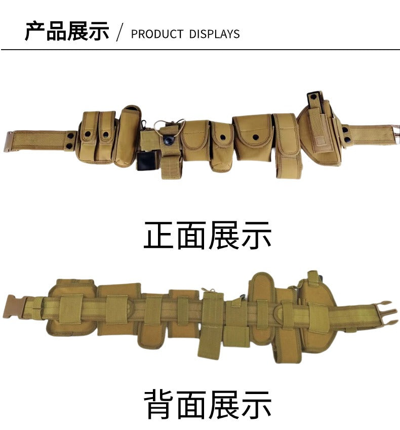 Das Set enthält 10 abnehmbare Taschen, darunter Halterungen für Werkzeuge, Taschenlampen, Funkgeräte und andere wichtige Ausrüstung. Das Schnellverschlusssystem ermöglicht schnelle Anpassungen und eignet sich daher für Sicherheitspersonal, Polizei, CS-Spiele, Airsoft und Outdoor-Enthusiasten.