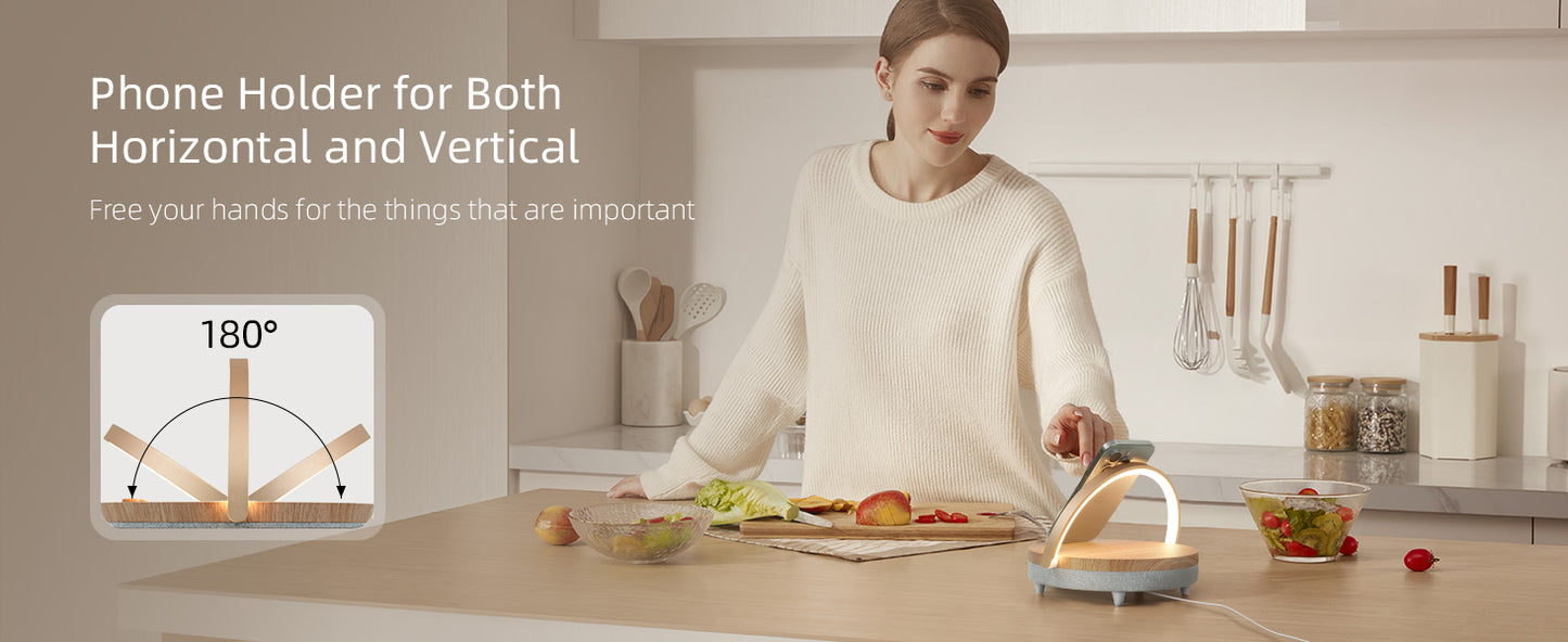 【Verstellbarer Handyhalter】 180-Grad-Drehung der Lichtleiste, finden Sie die beste Position für jedes Ihrer Geräte wie Handy, Pad und E-Book. Sowohl horizontal als auch vertikal erhalten Sie einen komfortablen Betrachtungswinkel.