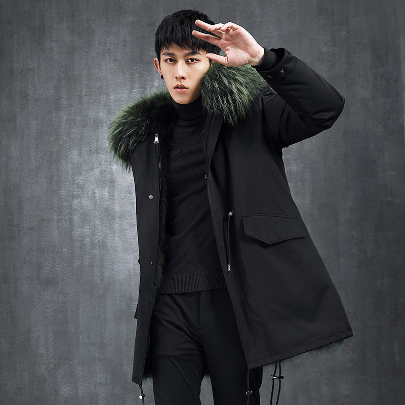 Conquer the coldest days with the Aourun Men's Parka, designed for maximum impact and insulation. This statement winter coat combines a rugged outer shell with a lavish, removable fox fur-lined hood and a plush inner lining, creating a true "fur-integrated" feel. Its tailored slim fit and mid-length cut offer modern style and coverage, while the adjustable waist drawcord ensures a customizable silhouette. From urban streets to snowy getaways, this parka is your ultimate defense against the elements, wrapped in contemporary Korean-inspired design.