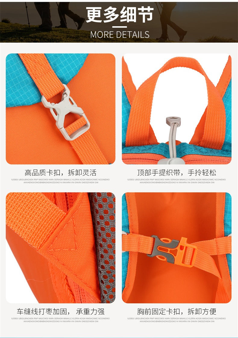 Dieser Rucksack aus hochwertigem Nylon mit Polyesterfutter ist ultraleicht (nur 0,3 kg) und dennoch robust genug für Outdoor-Herausforderungen. Die atmungsaktiven, luftgepolsterten Schultergurte reduzieren die Ermüdung bei langen Wanderungen, während mehrere Fächer für die Organisation Ihrer wichtigsten Utensilien sorgen.