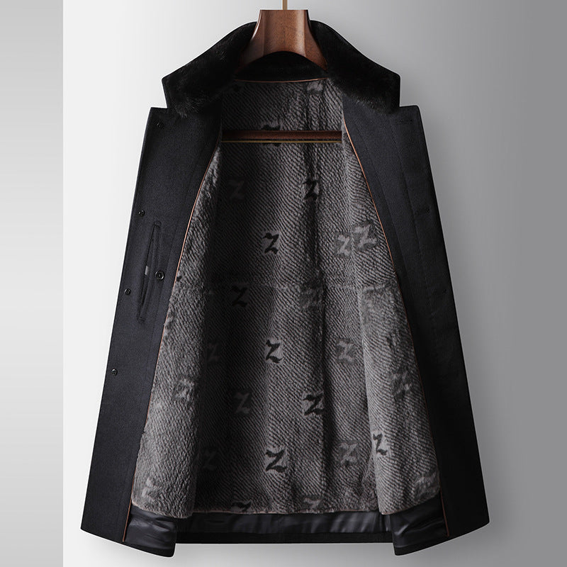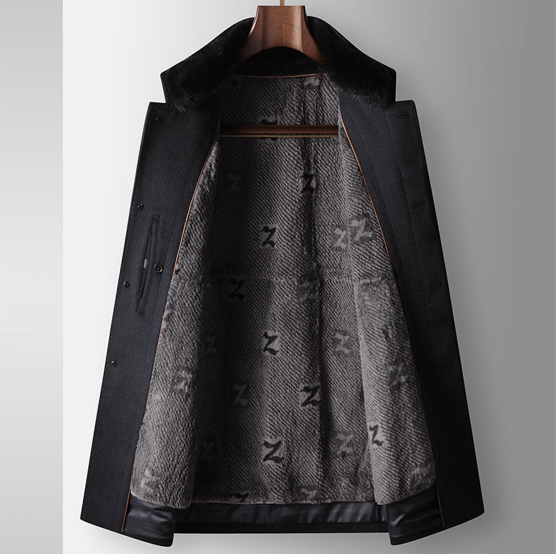 Benji Men's Wool Blend Overcoat with Detachable Rabbit Fur Lining | Winter Business Casual Topcoat for Men | Thick Mid-Length Wool Jacket| SDN682
