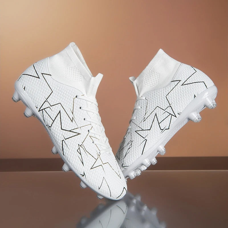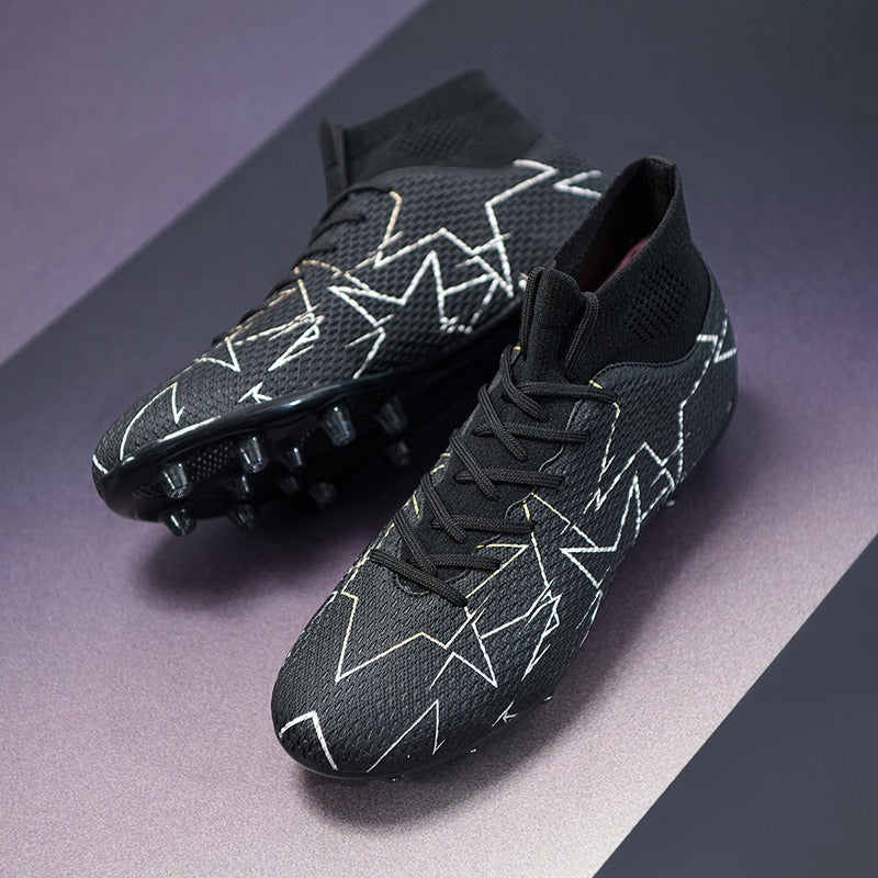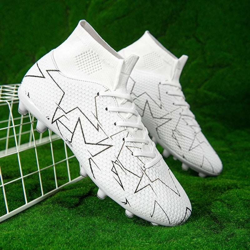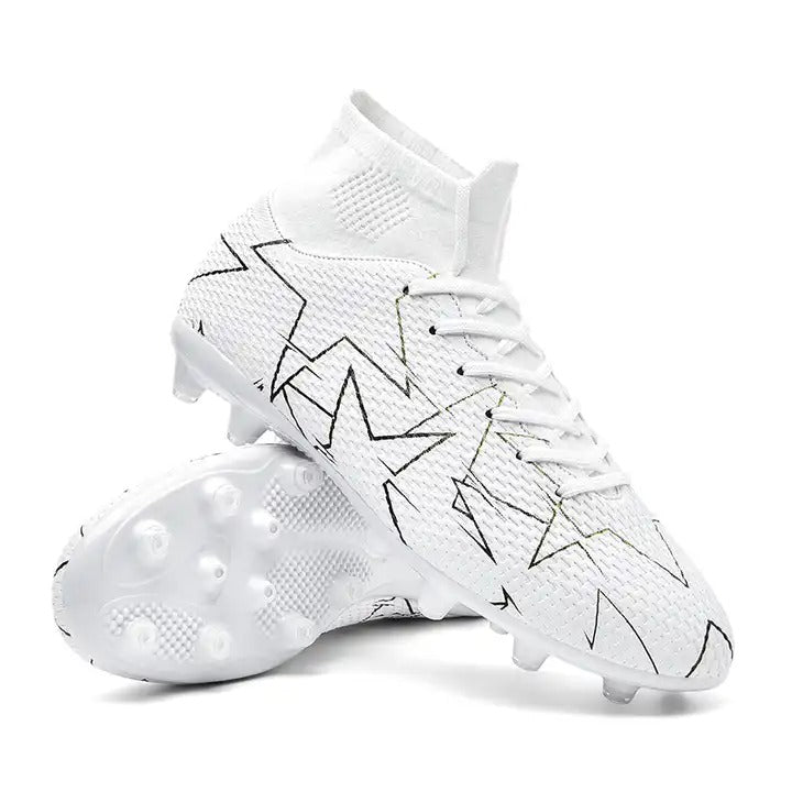 Bringen Sie Ihr Fußballspiel mit unseren atmungsaktiven High-Top-Fußballschuhen auf das nächste Level. Diese Schuhe bieten höchsten Komfort und Atmungsaktivität und verfügen über lange Nägel für optimale Traktion und Training – perfekt, um Ihren inneren Ronaldo zu entfesseln. Steigern Sie Ihre Leistung noch heute mit unseren erstklassigen „Ronaldo Cleats“.