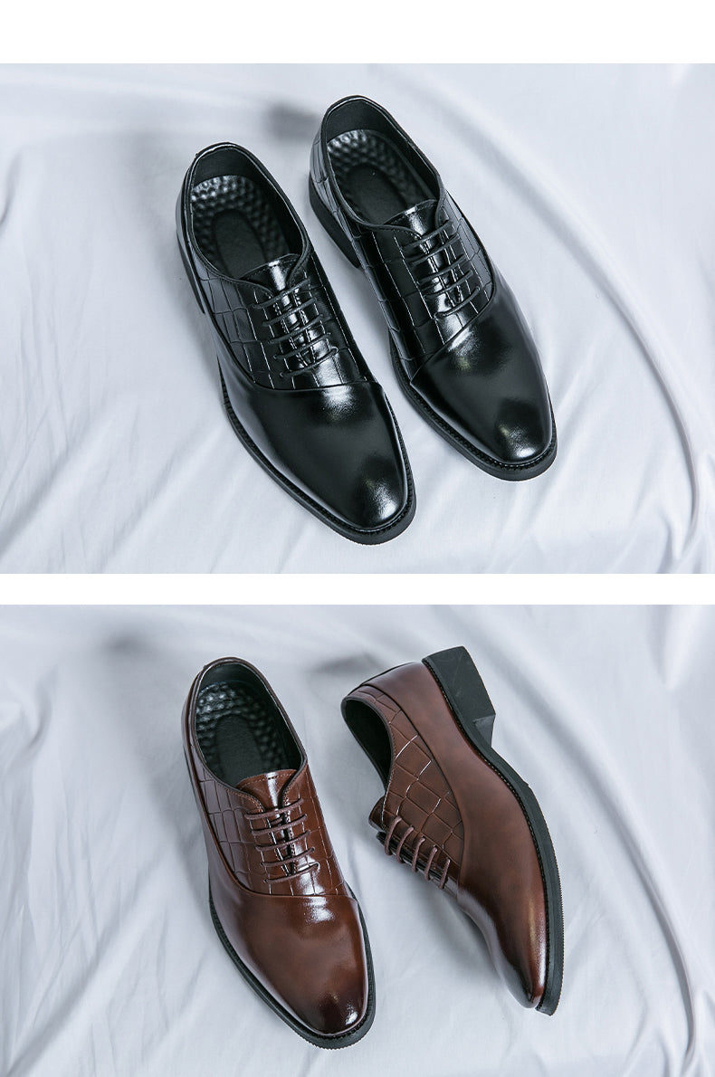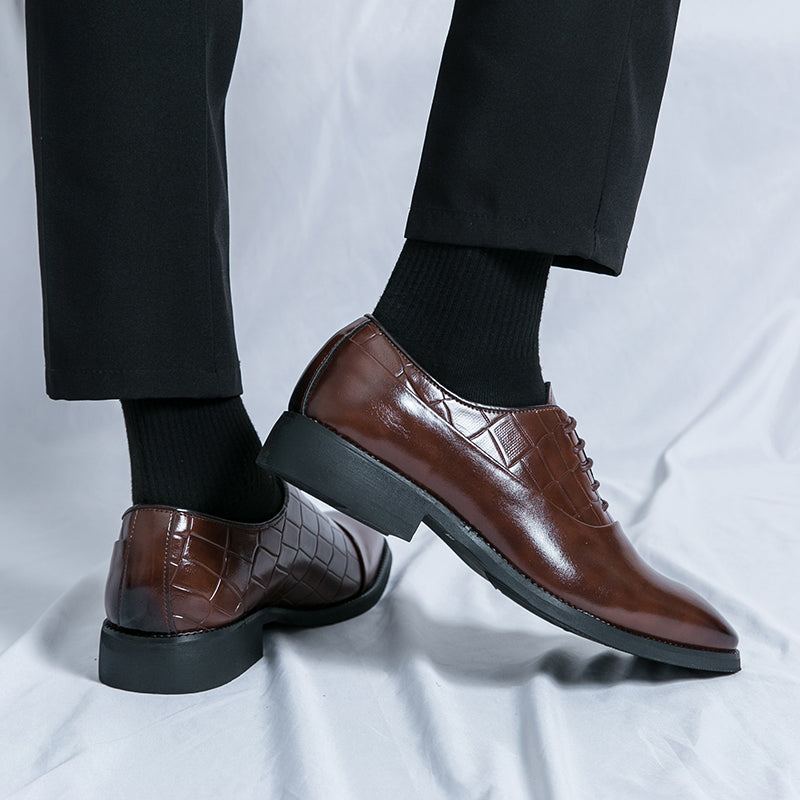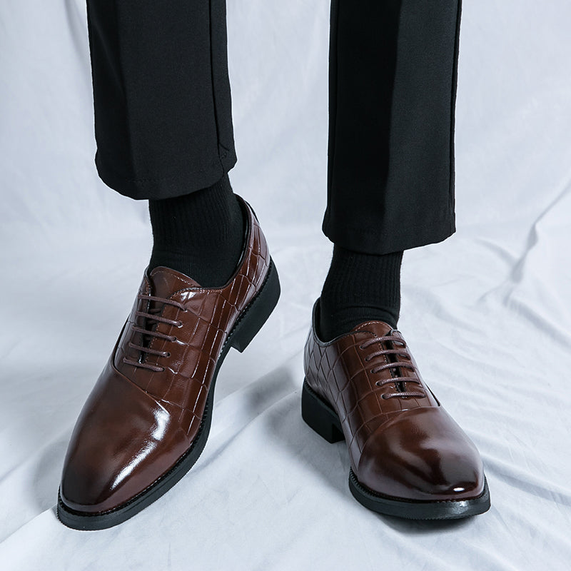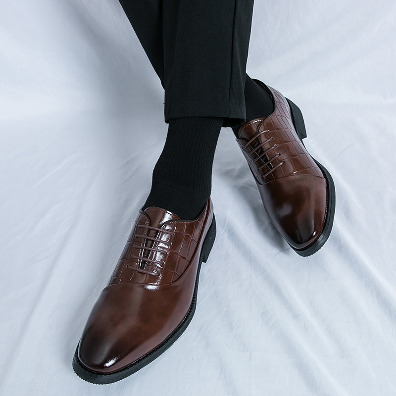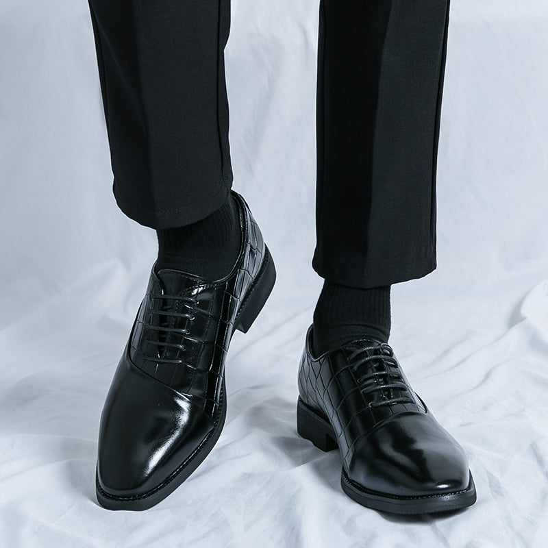 Unsere Business-Lederschuhe wurden speziell für Geschäftsleute gefertigt und vereinen Stil und Funktionalität perfekt. Diese Schnürschuhe mit geprägtem Patchwork-Design verleihen jedem Outfit einen Hauch von Eleganz. Dank der hochwertigen Lederverarbeitung sind diese Schuhe strapazierfähig und langlebig. Werten Sie Ihr Business-Outfit mit unseren Business-Lederschuhen auf.