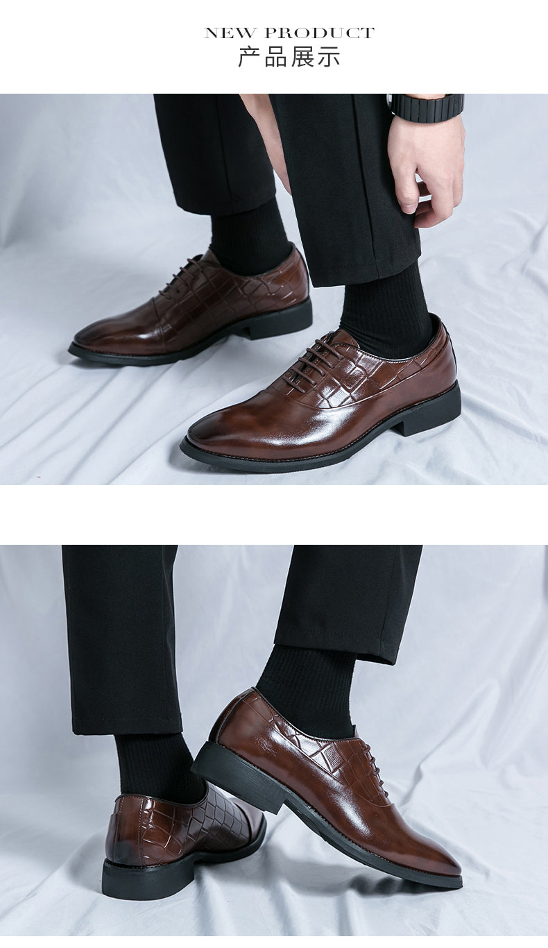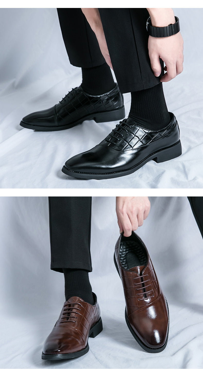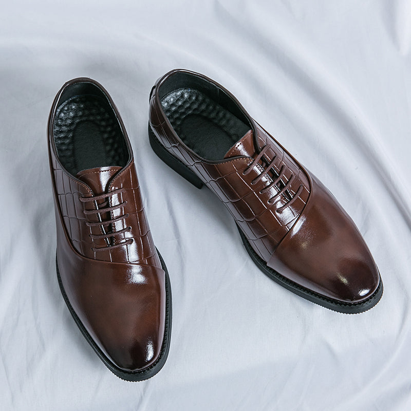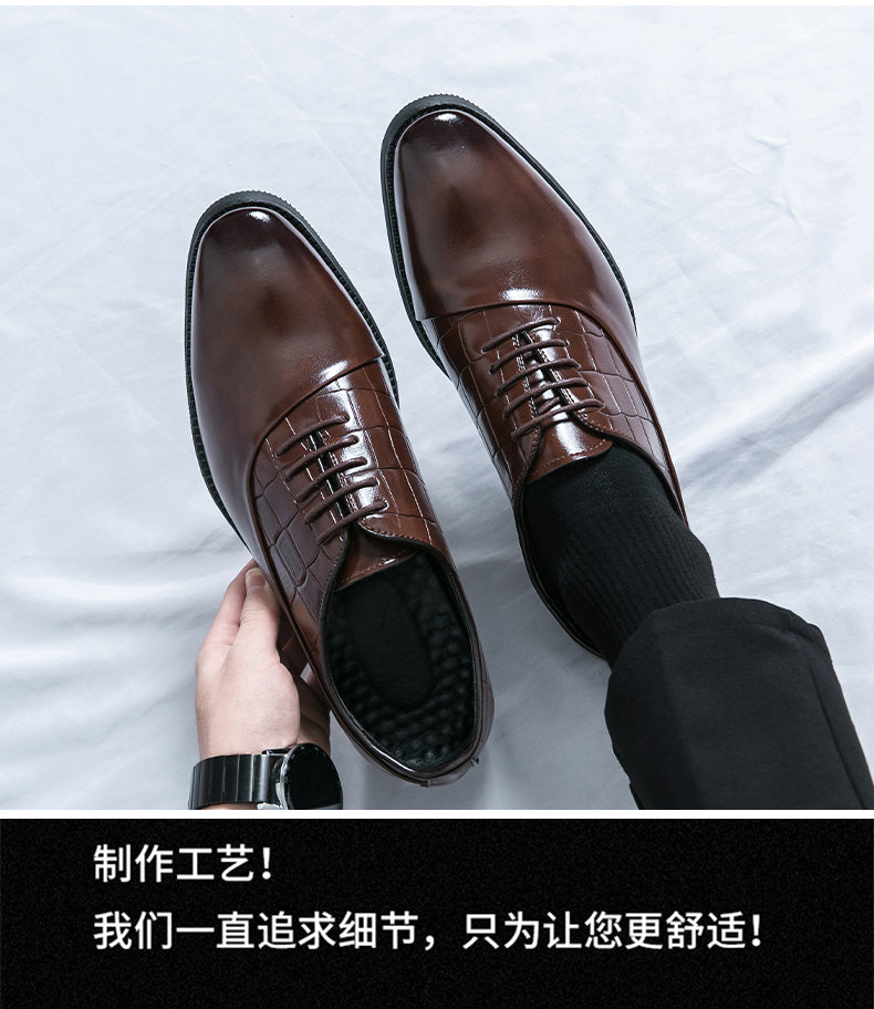 Unsere Business-Lederschuhe wurden speziell für Geschäftsleute gefertigt und vereinen Stil und Funktionalität perfekt. Diese Schnürschuhe mit geprägtem Patchwork-Design verleihen jedem Outfit einen Hauch von Eleganz. Dank der hochwertigen Lederverarbeitung sind diese Schuhe strapazierfähig und langlebig. Werten Sie Ihr Business-Outfit mit unseren Business-Lederschuhen auf.