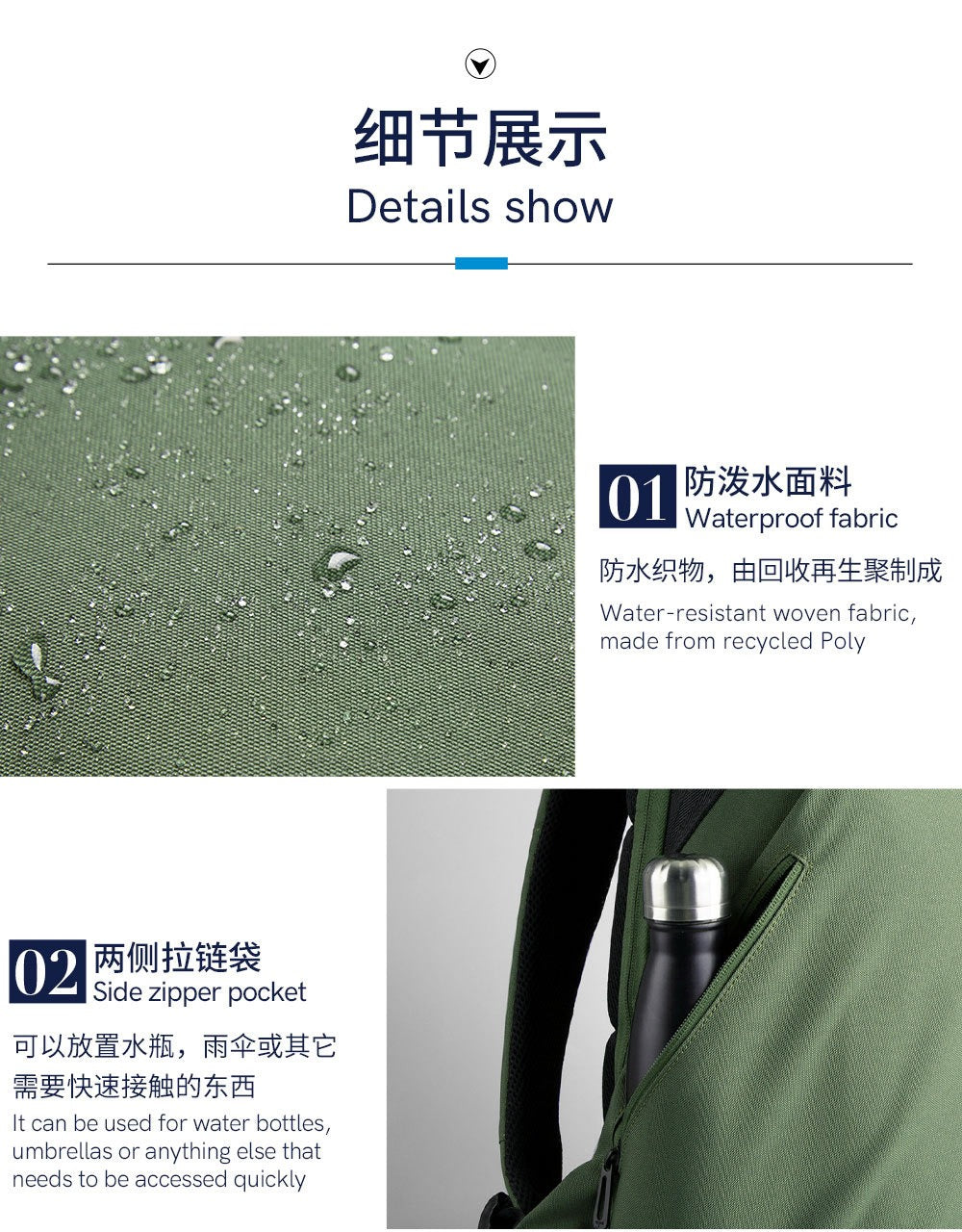 Kingsons Umweltfreundlicher Herrenrucksack – RPET, USB & Schloss | 9658