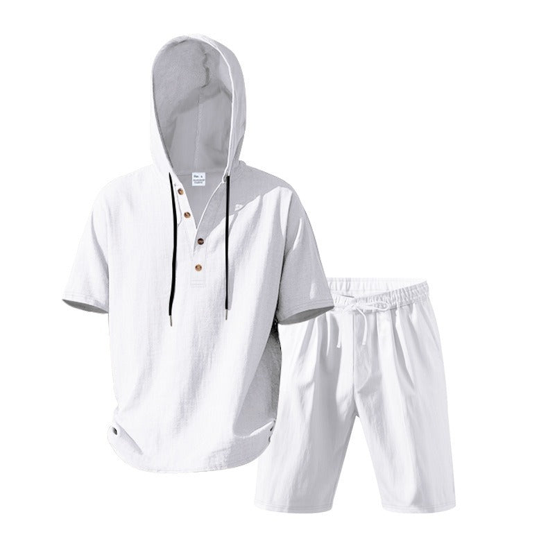 Herren Sommer Leinen Kapuzenhemd & Shorts Set Leichtes Casual Beachwear Set | CW15