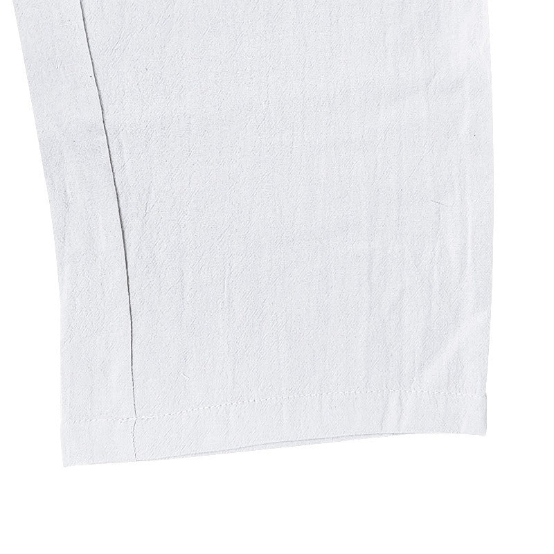 Dieses Produkt besteht aus natürlichem Leinenstoff, der hautfreundlich und hoch atmungsaktiv ist. Bitte beachten Sie, dass sich die Hose aufgrund der Leinenzusammensetzung leicht und strukturiert anfühlt – sie hat keine fließende, drapierte Textur wie synthetische Mischgewebe.