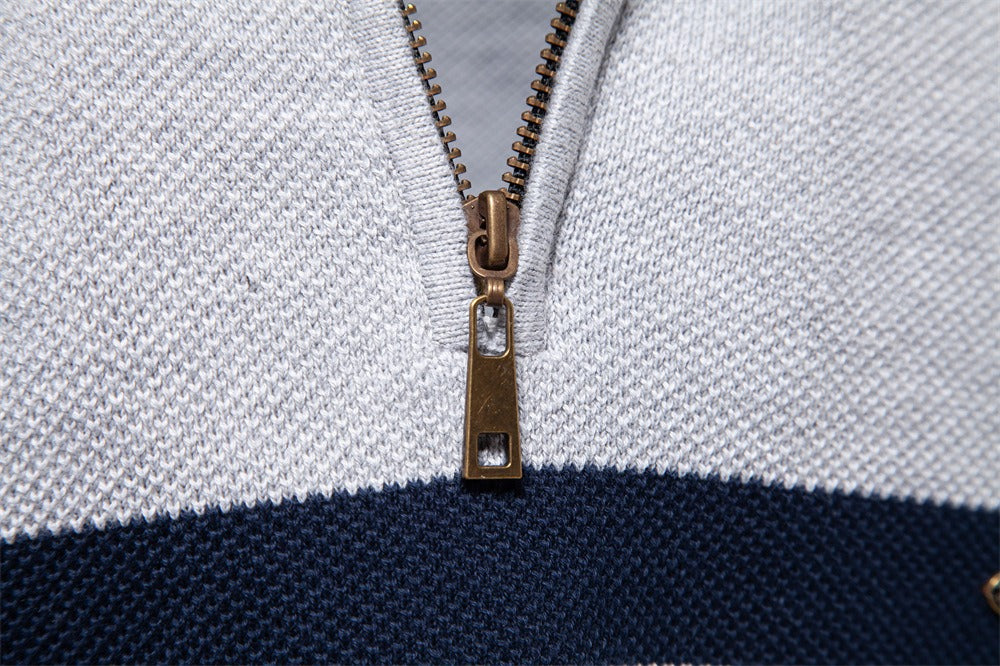 Herren-Strickpullover mit Stehkragen und halbem Reißverschluss – Lässiger Colorblock-Pullover | SW135