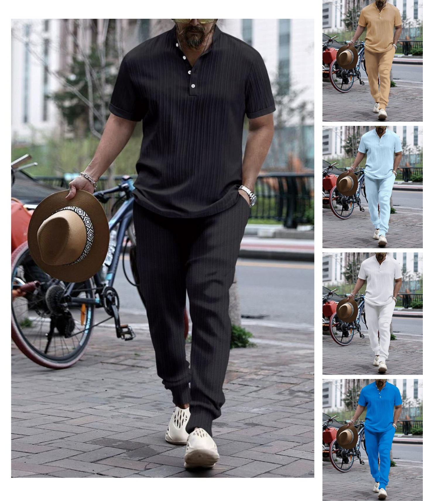 Veredeln Sie Ihren Stil mit unserem Herren-Set mit kurzärmeligen, gestreiften Hemden im Western-Stil mit Henry-Kragen und Vintage-Bluse. Mit klassischem Henry-Kragen und Vintage-Streifendesign verleiht dieses Set jedem Outfit einen Hauch von Eleganz. Hergestellt aus hochwertigen Materialien für dauerhaften Tragekomfort. Werten Sie Ihre Garderobe noch heute auf.