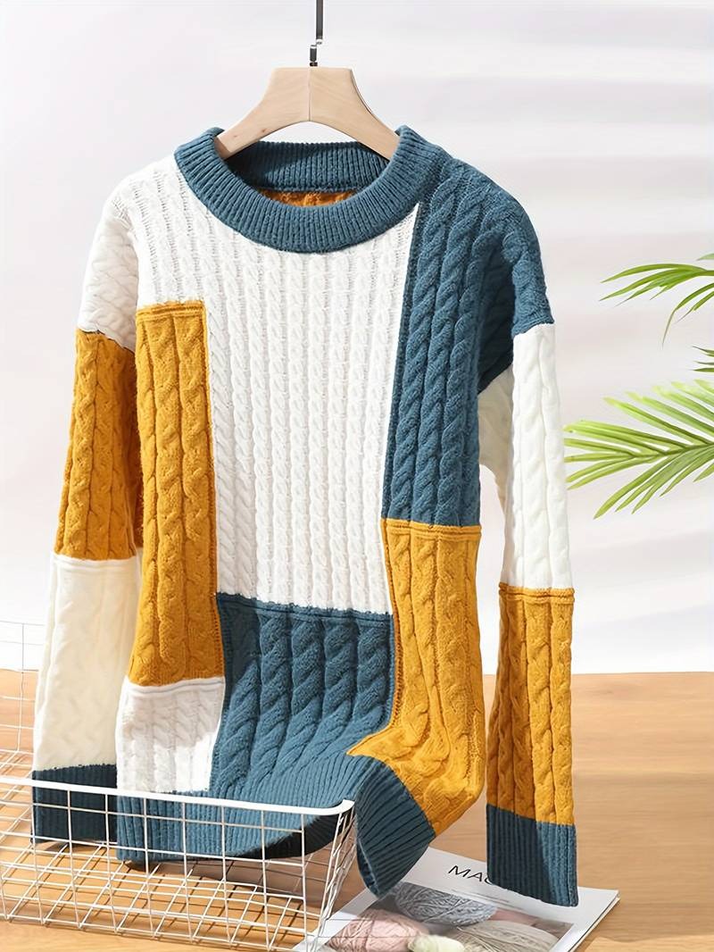 Warmer Herren-Strickpullover mit Rundhalsausschnitt, gerippt, langärmelig, Freizeitkleidung, Sweatshirt | 8373