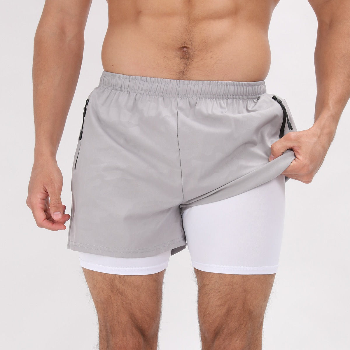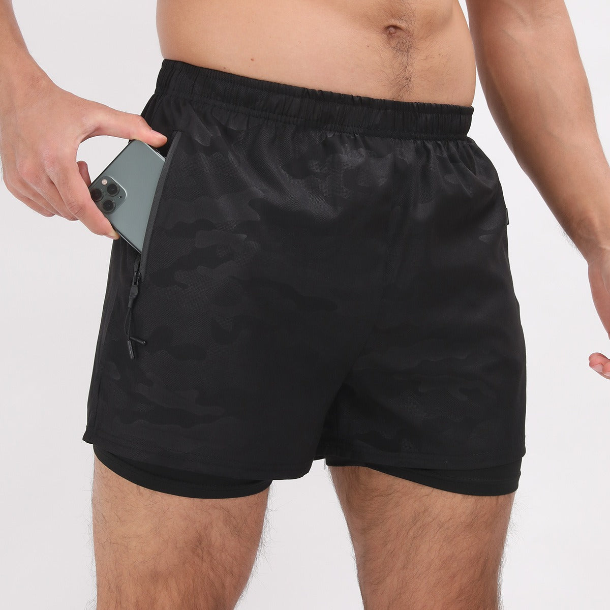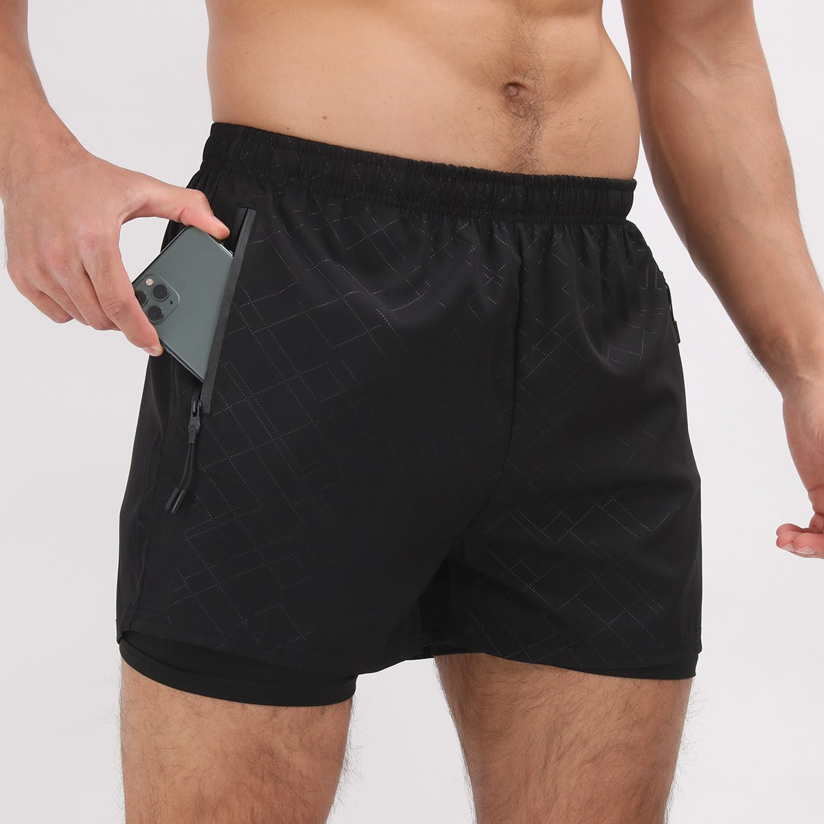 Herren Sommer Polyester 2 in 1 Schnelltrocknende Kurze Jogginghose Workout Lauf Gym Shorts | DK-903
