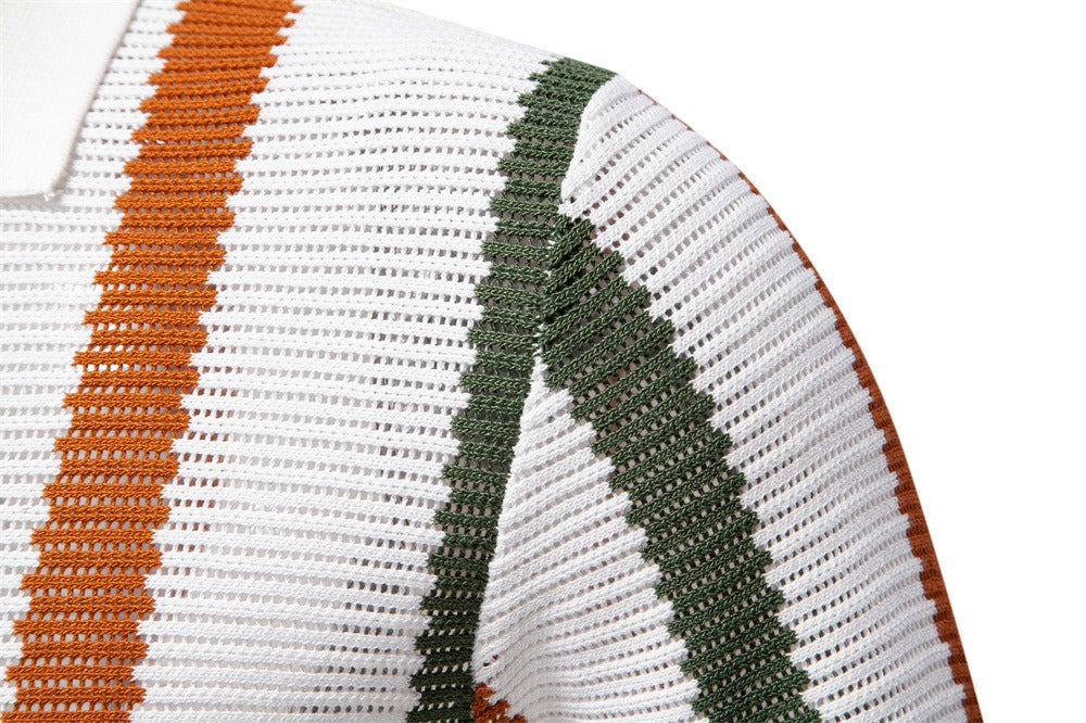 Atmungsaktives Poloshirt aus gestreiftem Strick für Herren – 2025 Sommer Slim-Fit Business Casual Top | PSD8030