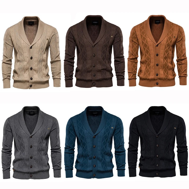 Herren Strickjacke mit Zopfmuster, Schalkragen, schmale Passform, langärmelig, lässig