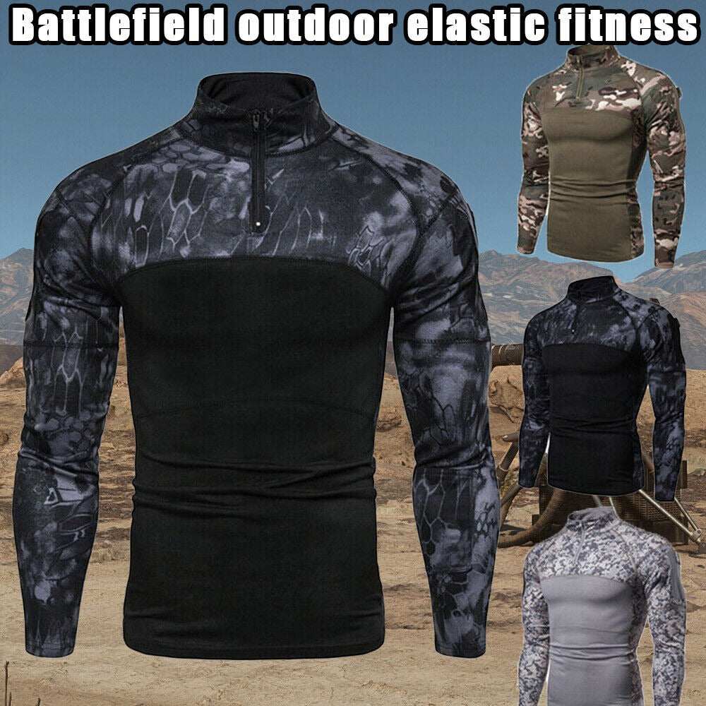 Herren Camouflage Stitching Casual T-Shirt Stehkragen Langarm Leichter Pullover | 1815-G11