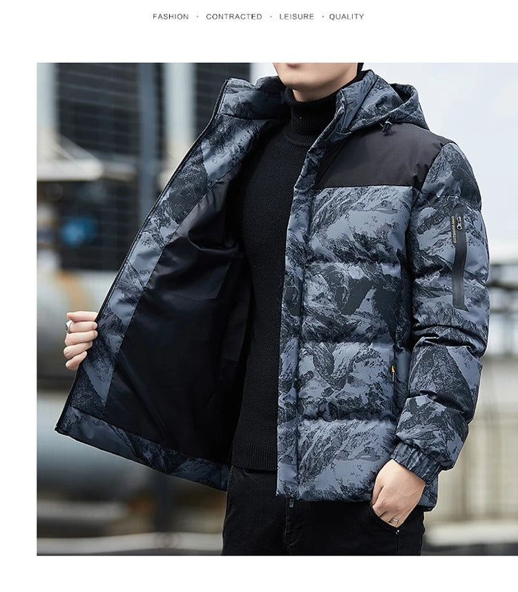 Herren Daunenjacke mit Kapuze, Camouflage, Freizeitmantel, verdickter Winterparka-Mantel | 2308
