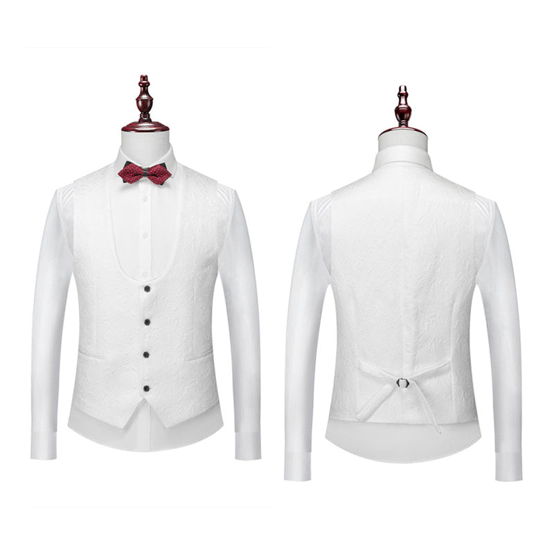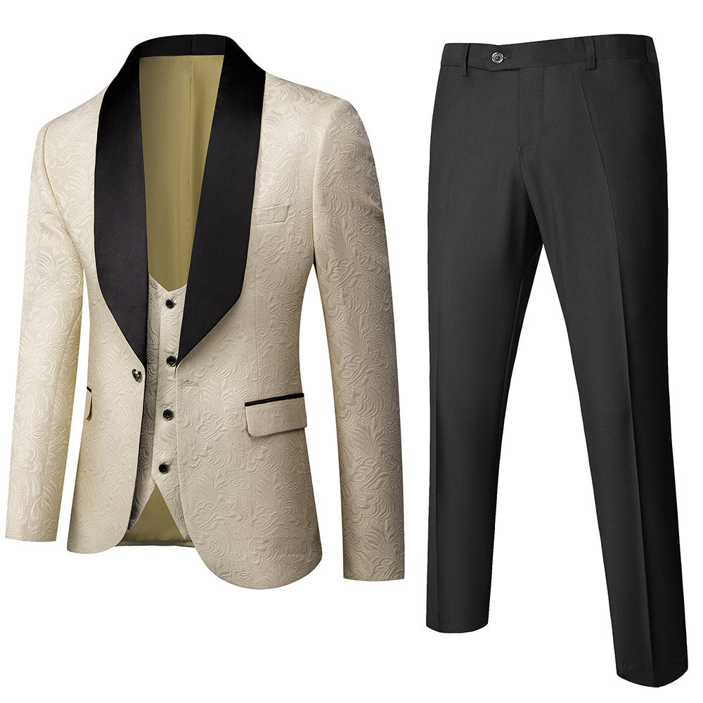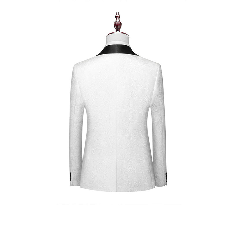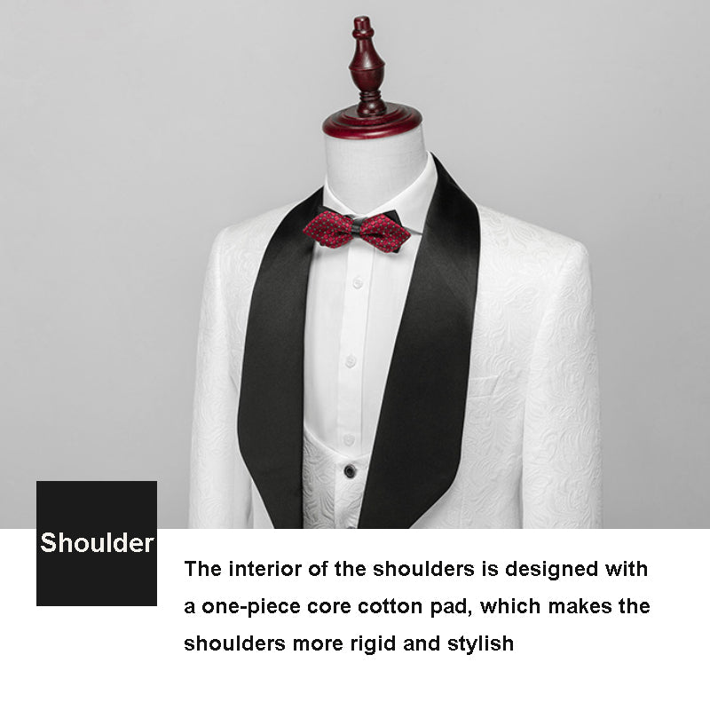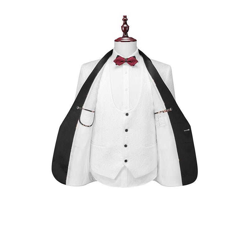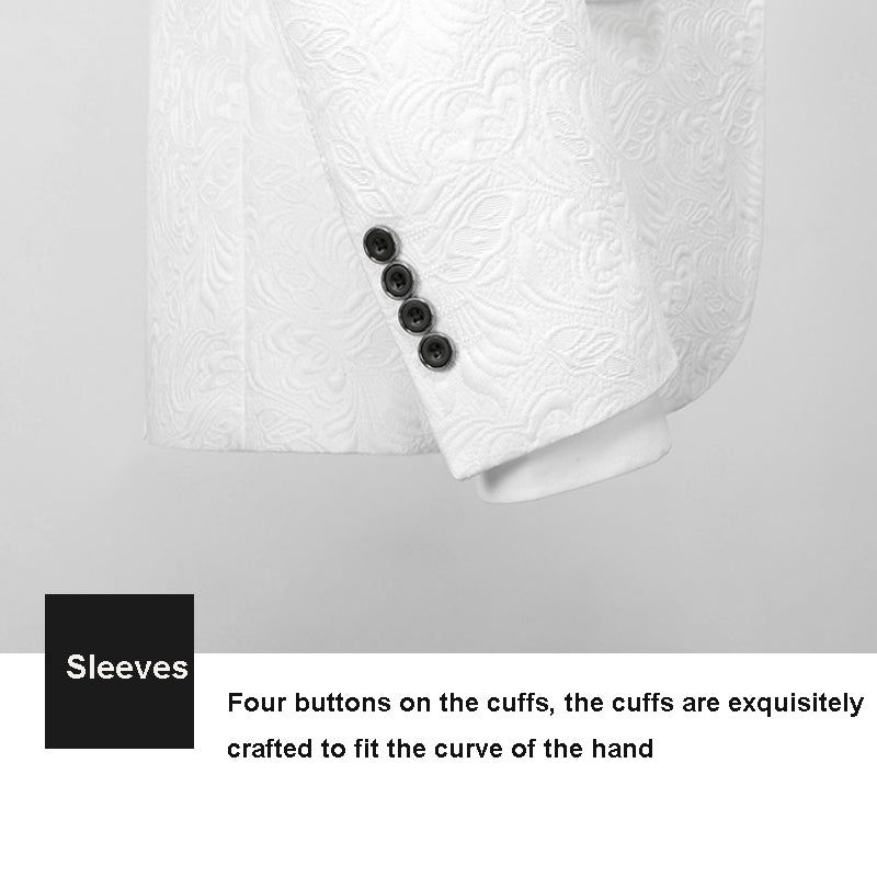 3-teiliger Herrenanzug mit geprägtem Blumenmuster, Slim Fit, Jacquard-Smoking, ein Knopf, Paisley-Muster, Schalkragen | 1931
