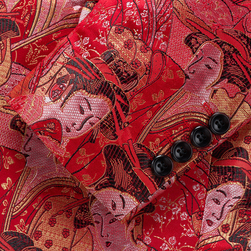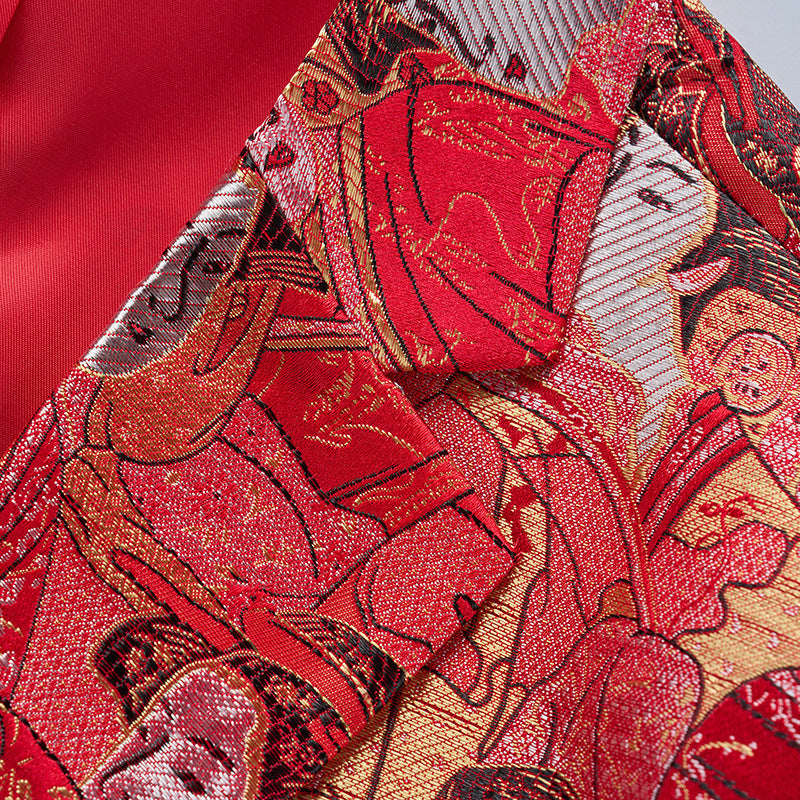 Bold Figure Pattern: Intricate jacquard weave with detailed figure designs for a standout, luxurious look.