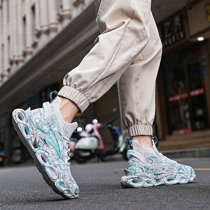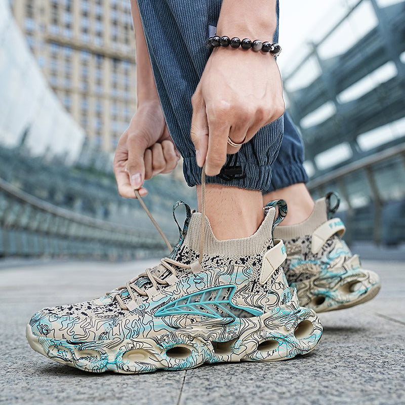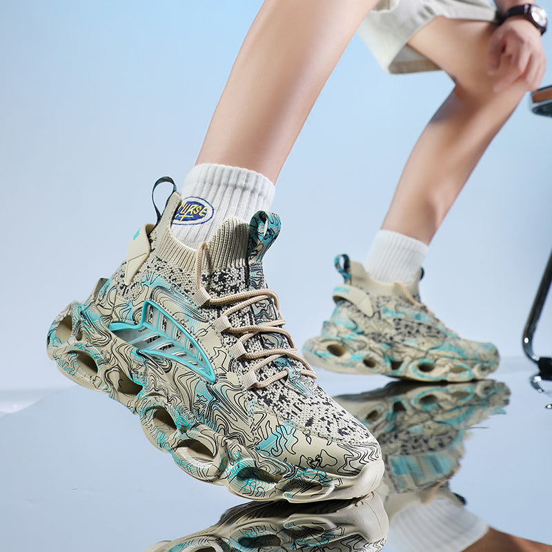 Diese Flyknit-Sportschuhe wurden für aktive Männer entwickelt und bieten unschlagbare Atmungsaktivität und ein trendiges Mesh-Design. Mit der leichten Blade-Sohle bieten diese Laufschuhe hervorragende Dämpfung und Halt und fördern gleichzeitig die natürliche Fußbewegung. Bleiben Sie bei Ihrem nächsten Lauf cool und stylisch mit diesen Must-have-Schuhen.