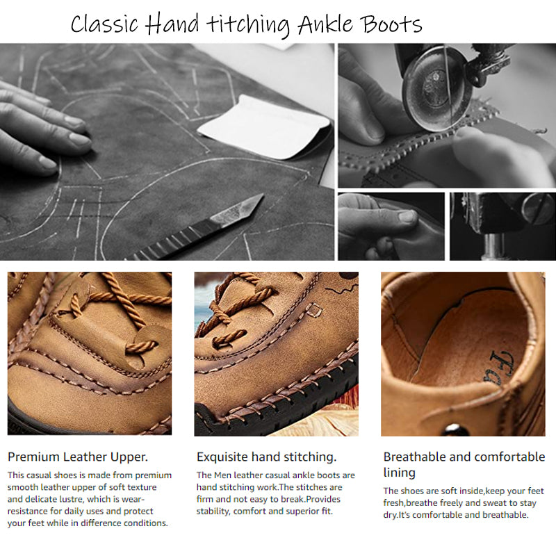 Herren Leder Casual Schnürstiefeletten Walking Nähte Arbeitsmode Schuhe