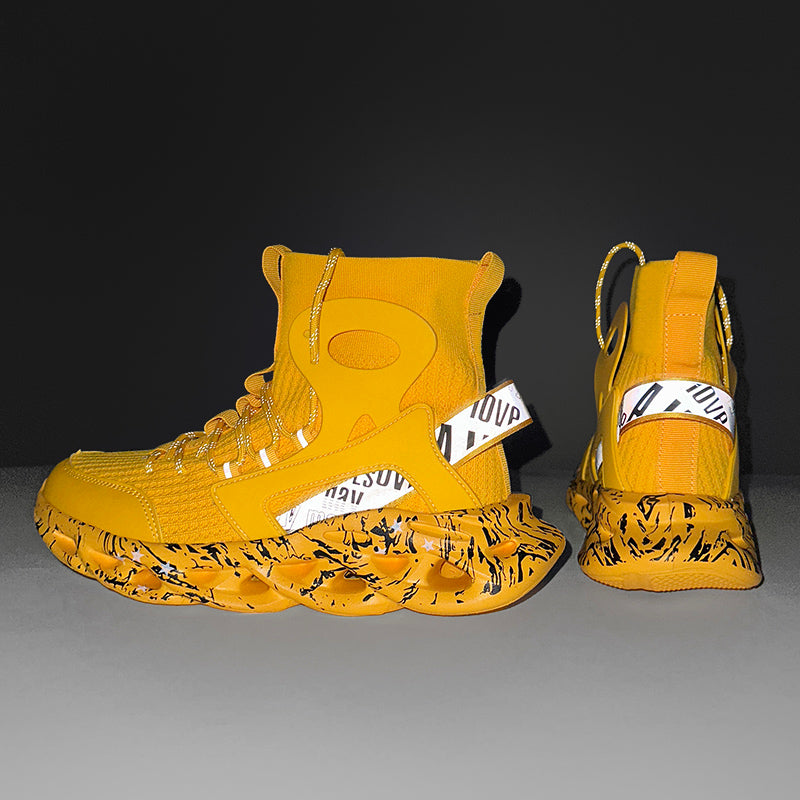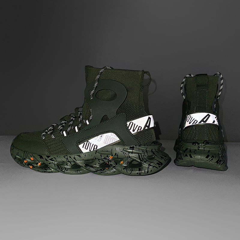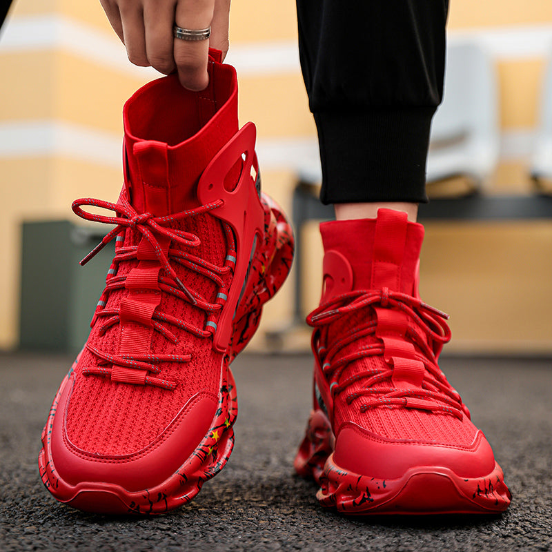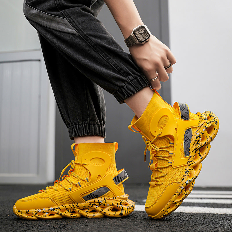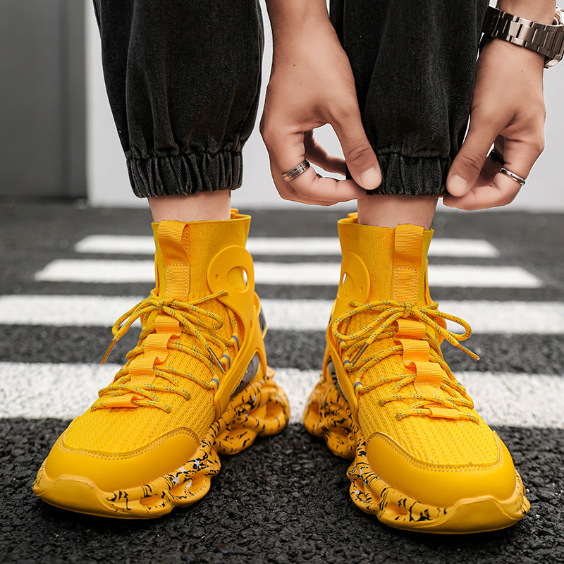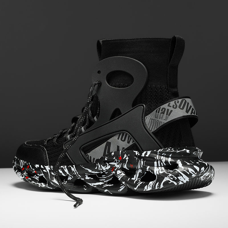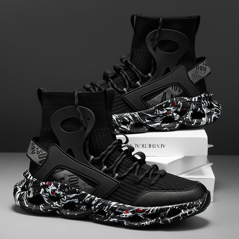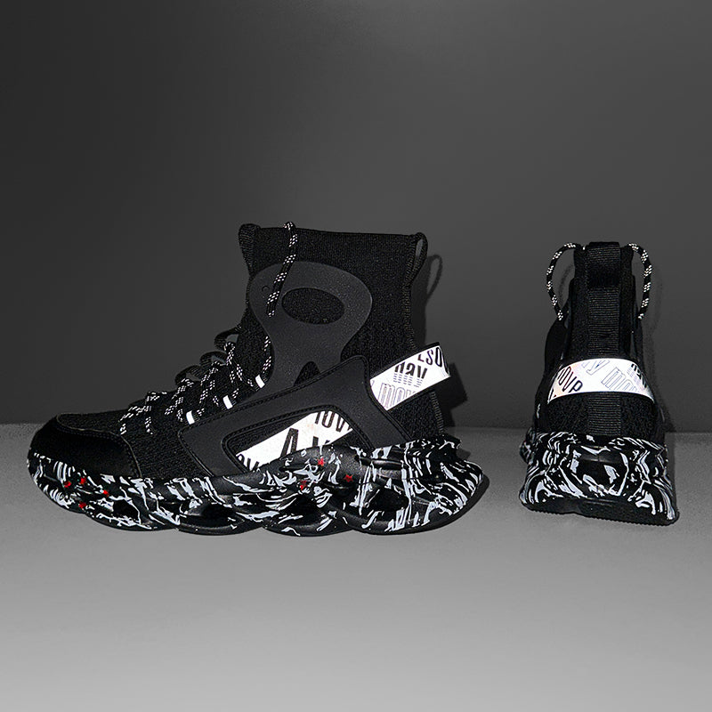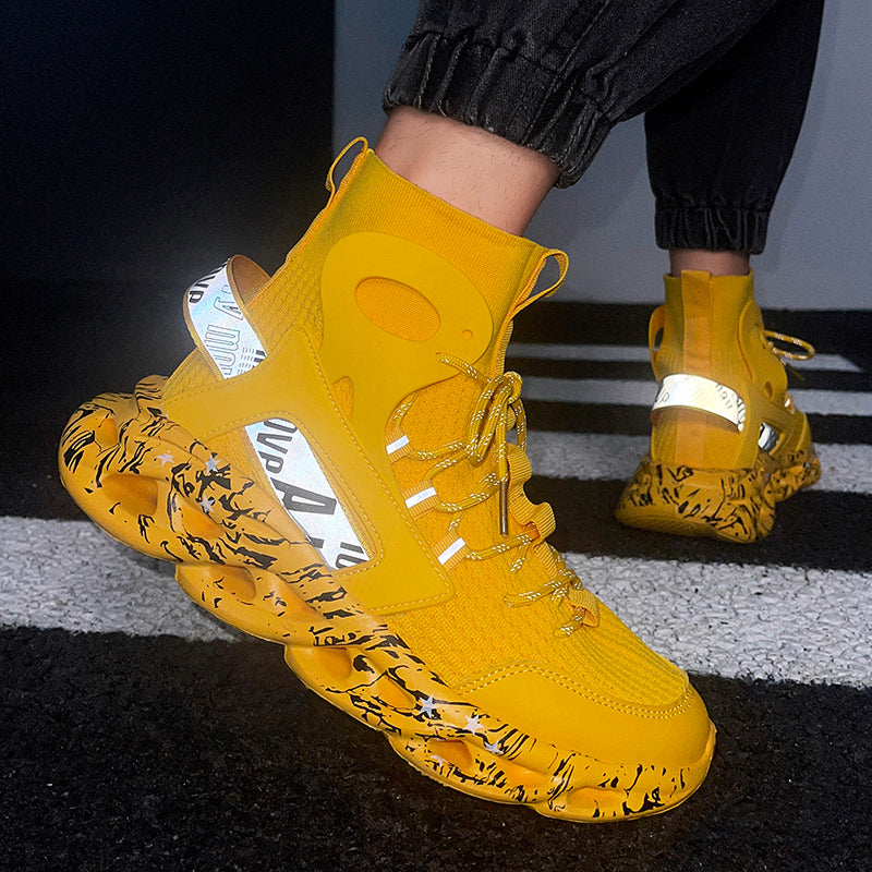 Diese High-Top Mesh-Socken-Sneaker für Herren sind sowohl zum Laufen als auch für die Freizeit geeignet. Mit reflektierendem Material und atmungsaktivem Mesh bieten diese Sneaker Stil und Funktionalität zugleich. Bleiben Sie bequem und trendy unterwegs.