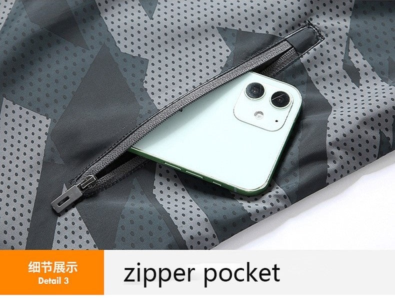 Herrenjacken, vollständig mit Camouflage-Muster bedruckt, leichte Jacken, Trenchcoat-Windbreaker mit durchgehendem Reißverschluss und Kapuze |