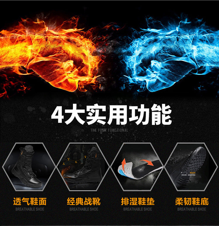 Step into rugged terrain with confidence in our professional-grade Military Tactical Boots. Engineered for special forces training, outdoor adventures, and demanding work environments, these high-top combat boots combine superior durability with all-day comfort. Featuring advanced slip-resistant soles and premium synthetic leather construction, they're built to withstand desert operations, mountain trails, and urban challenges.