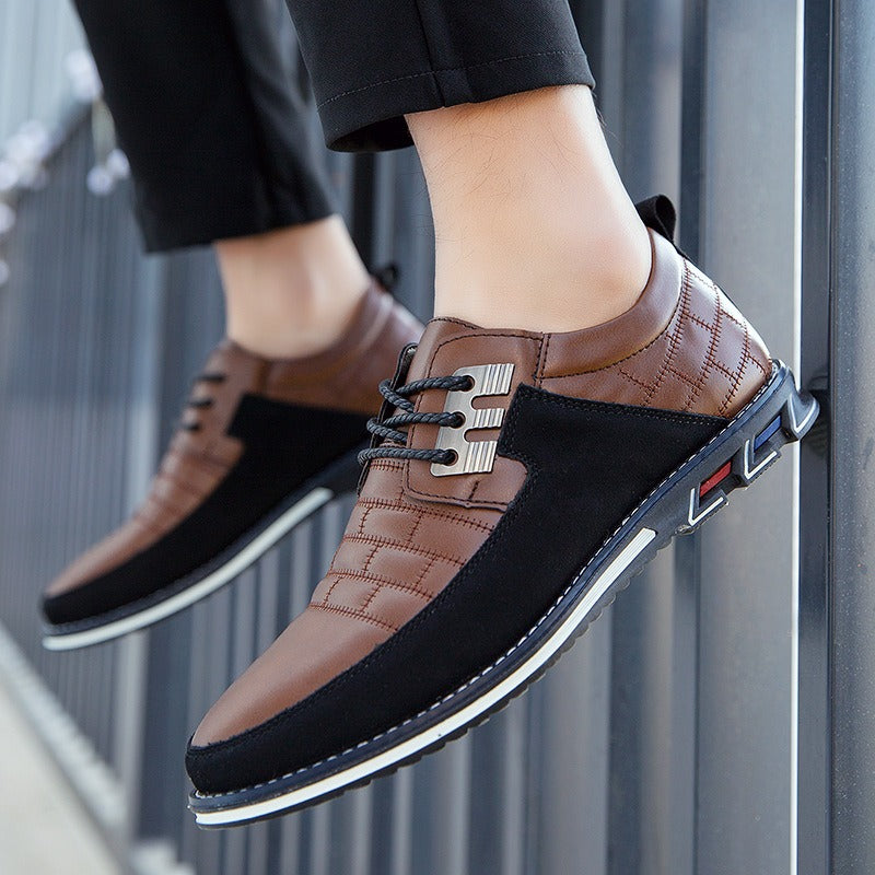 Herren-Derby-Schuhe im britischen Stil mit Karomuster, rutschfeste Leder-Loafer, Mokassins, Hochzeitsschuhe |