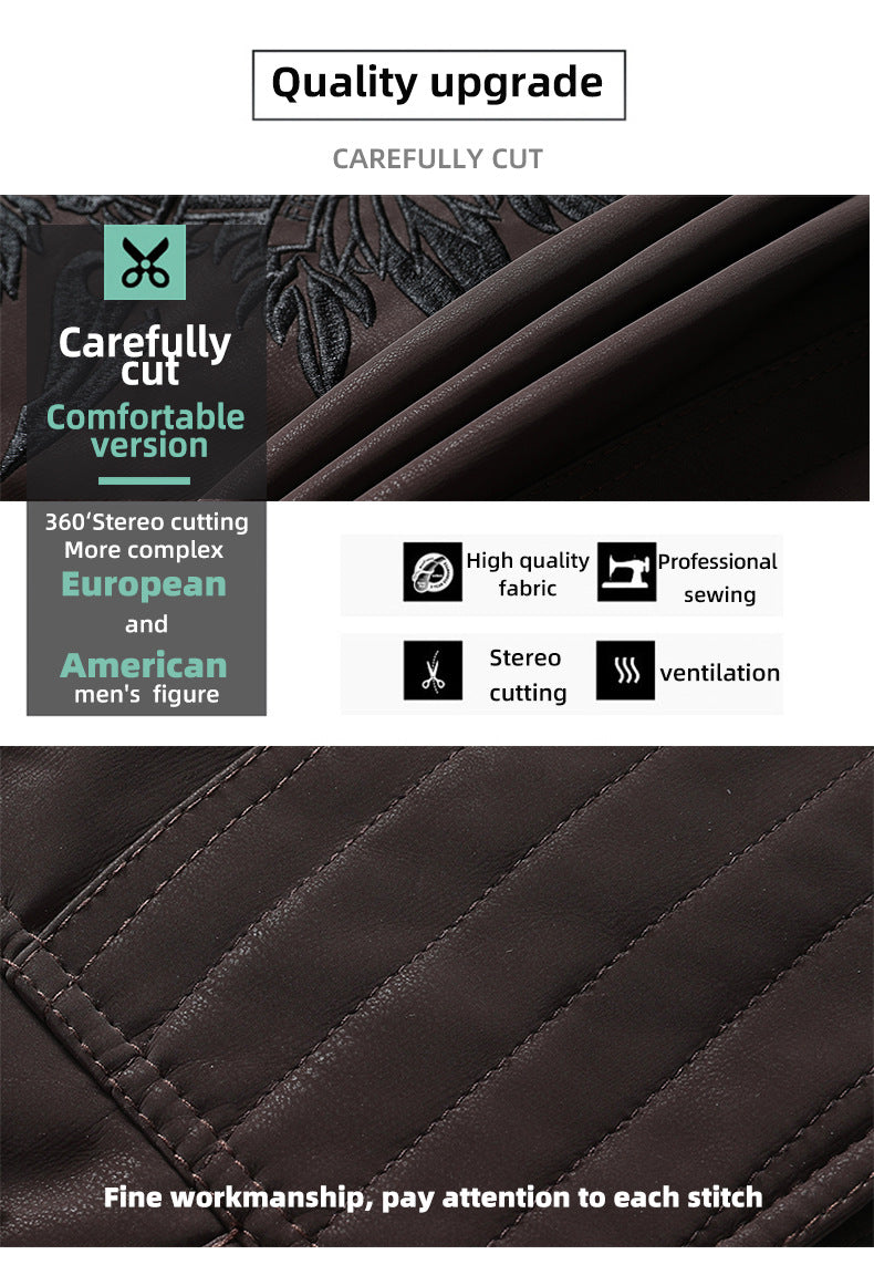 Herren PU-gebürstete weiche Wildlederjacke, modischer Blazer mit mehreren Stickereien | 8809