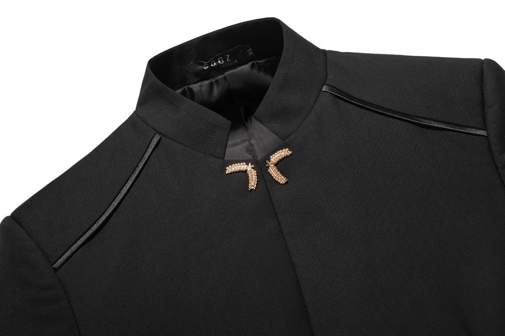 Herrenanzug Slim Fit Dreiteiliger Zhongshan-Anzug im britischen Stil mit Stehkragen | 02