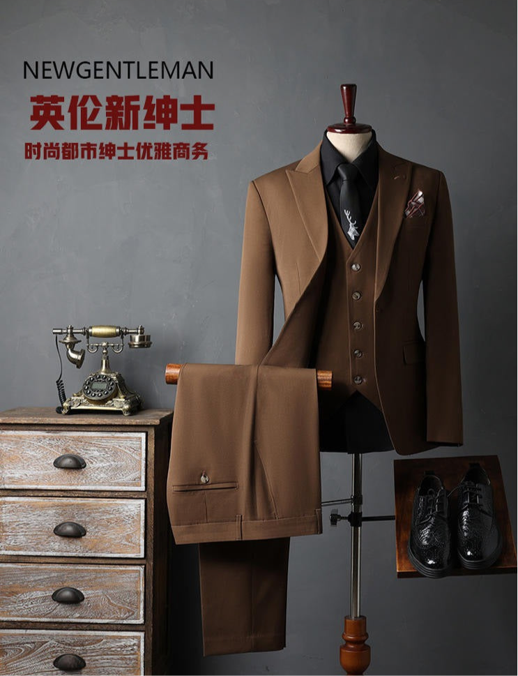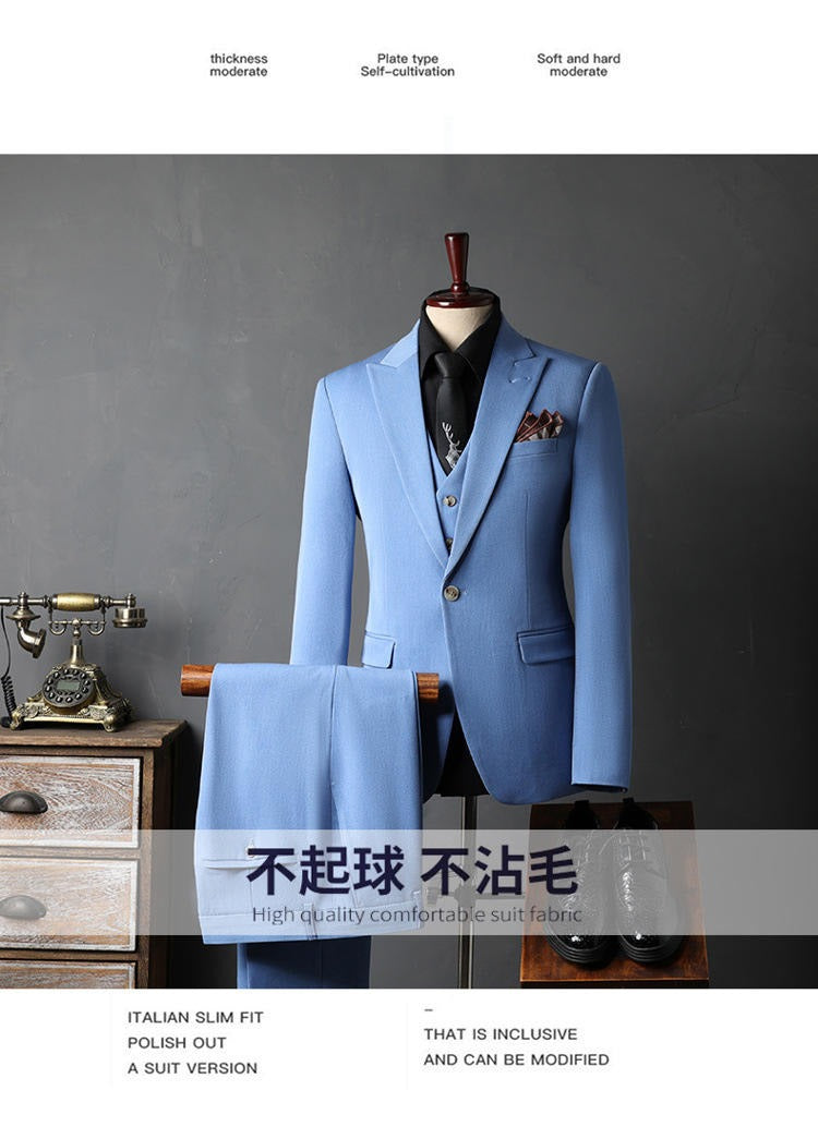 Herren Premium 3-teiliger Anzug Hochzeitskleid Business Smoking Smart Fit 3-teiliges Einreiher-Anzug-Set | S8018