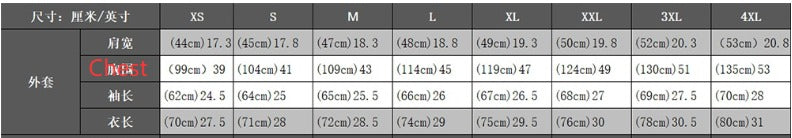 XS, S, M, L, XL, XXL, XXXL, XXXXL |