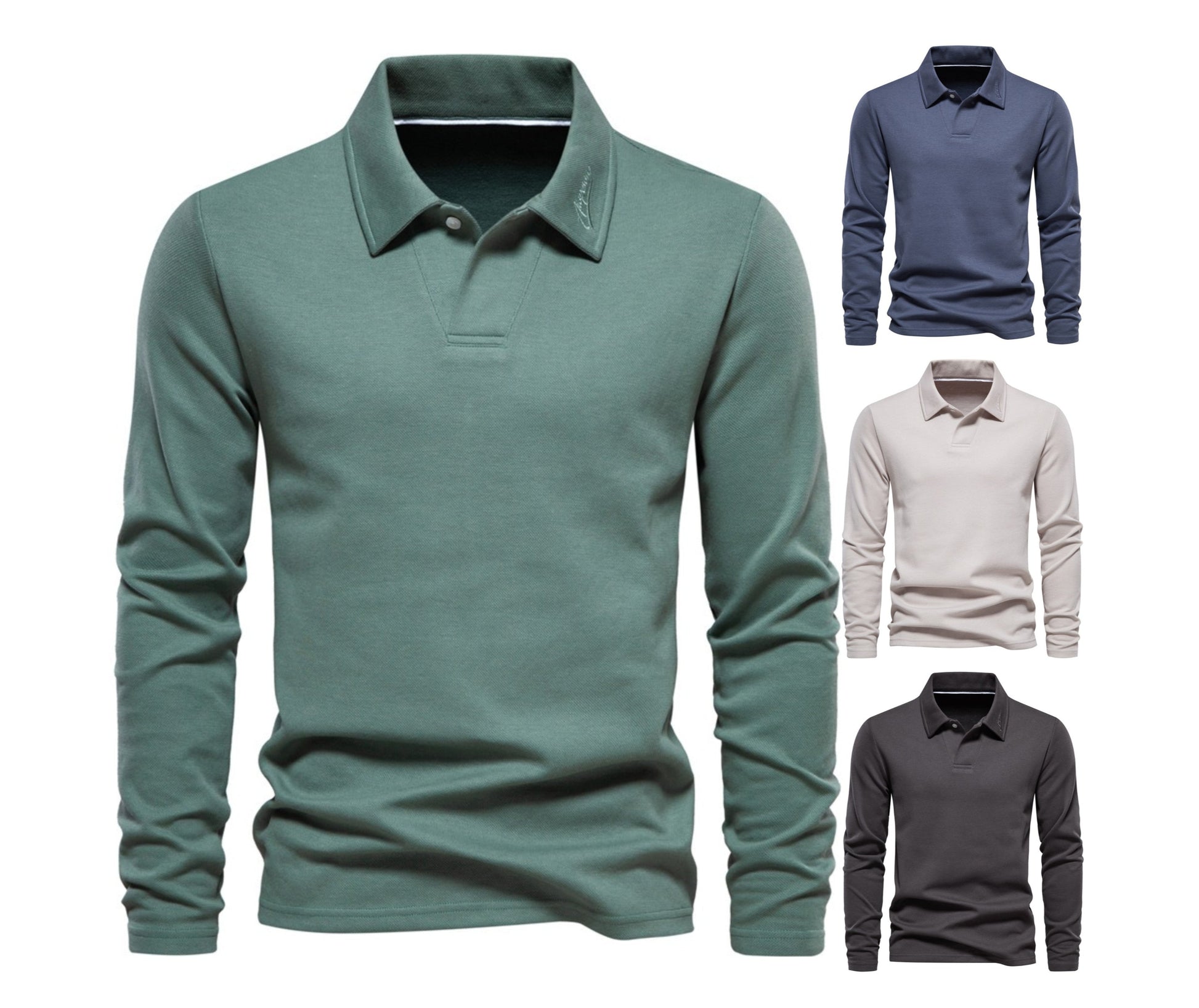 Gewaschenes Herren-Poloshirt – Langarm-Oberteil aus Baumwollmischung | Smart-Casual Herbst-Essential | PL255