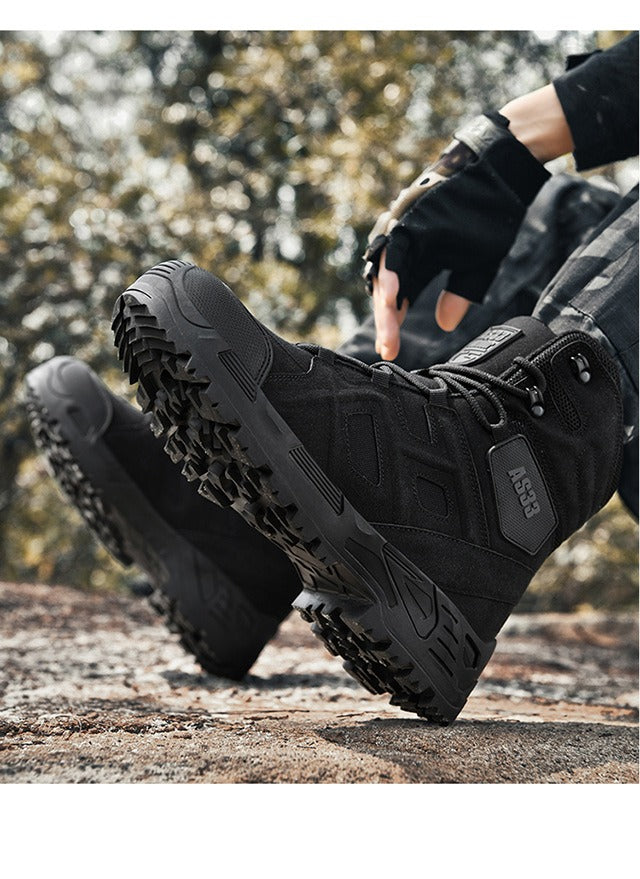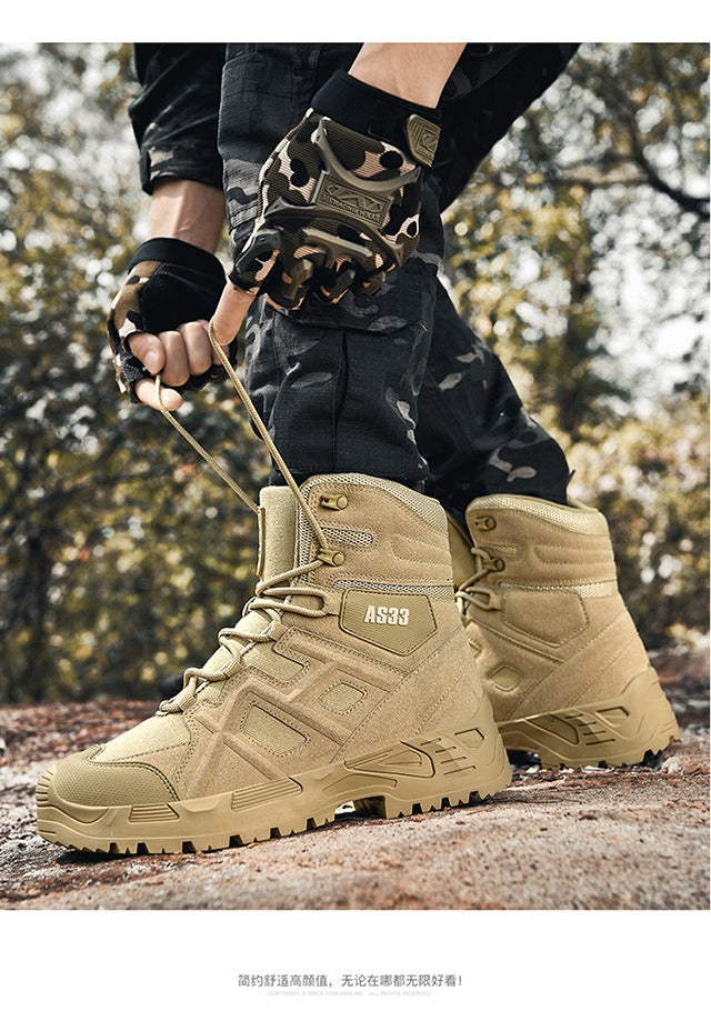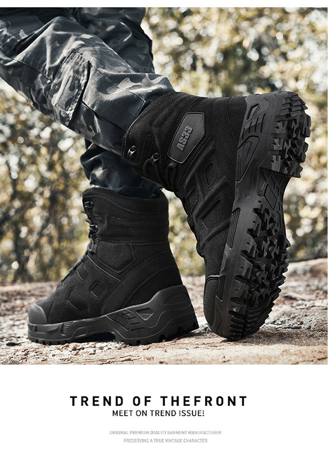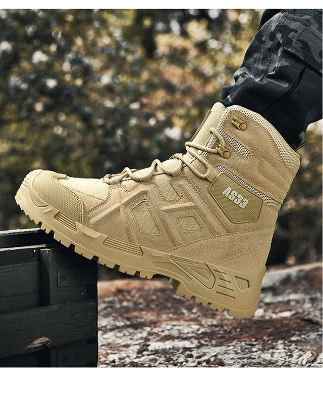 Diese wasserdichten Wanderstiefel aus Leder für Herren bieten ultimativen Schutz und Strapazierfähigkeit für jedes Outdoor-Abenteuer. Mit rutschfester Sohle, leichtem Design und atmungsaktivem Material eignen sich diese Stiefel perfekt für Militär, Kampf und taktische Einsätze. Mit diesen vielseitigen Wüstenstiefeln bleiben Sie in jedem Gelände bequem und sicher.