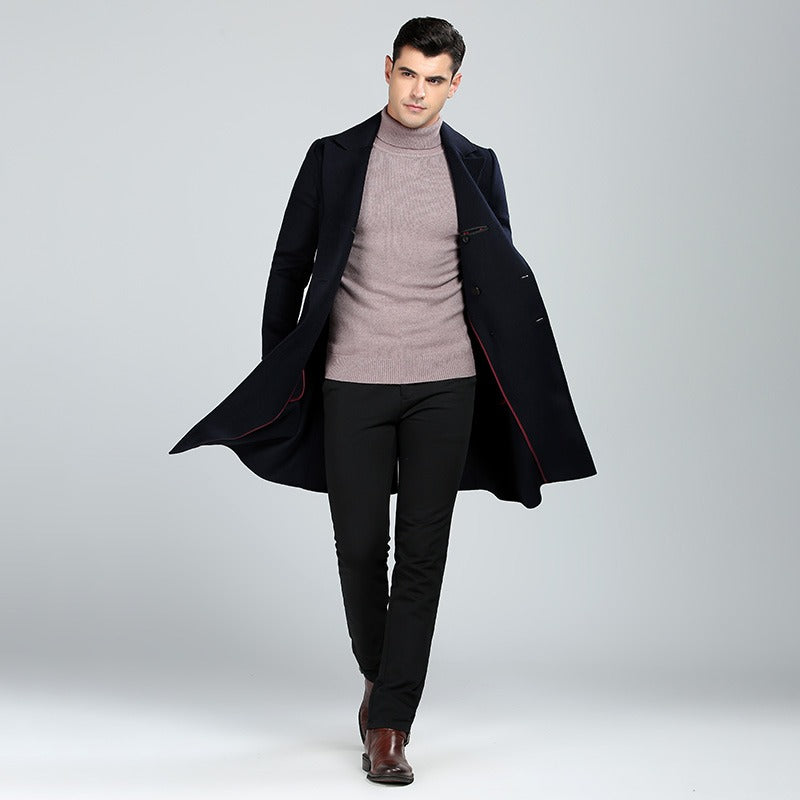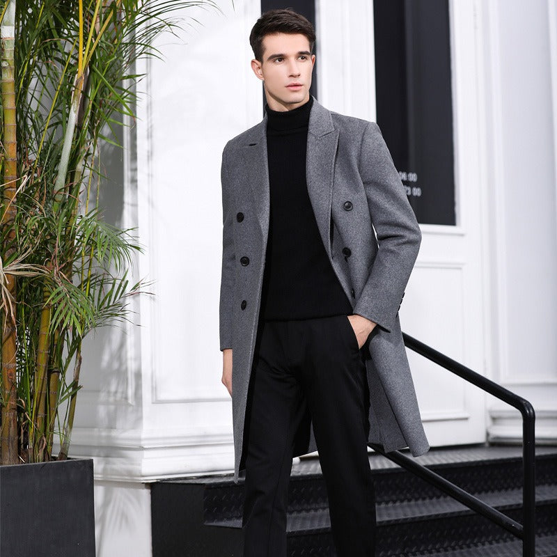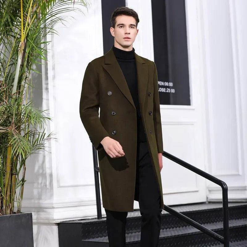 Herren Wollmischungen Langer Wollmantel Lässiger Woll-Trenchcoat Anzugjacke Übermantel | 1001