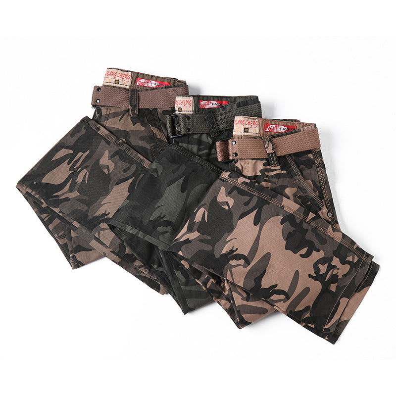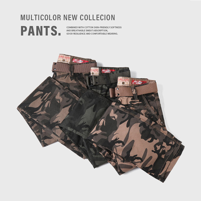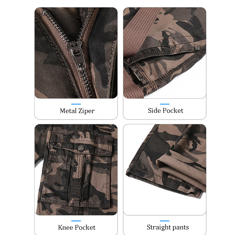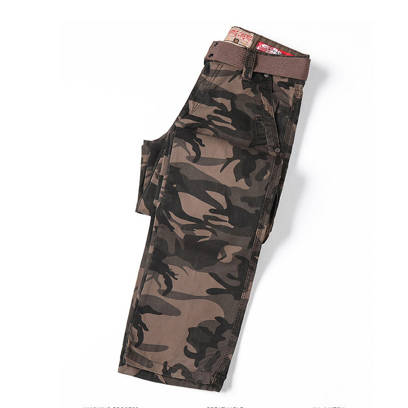 Lässige Camouflage-Hose mit geradem Bein und mehreren Taschen, Cargohose mit entspannter Passform | K5705-A